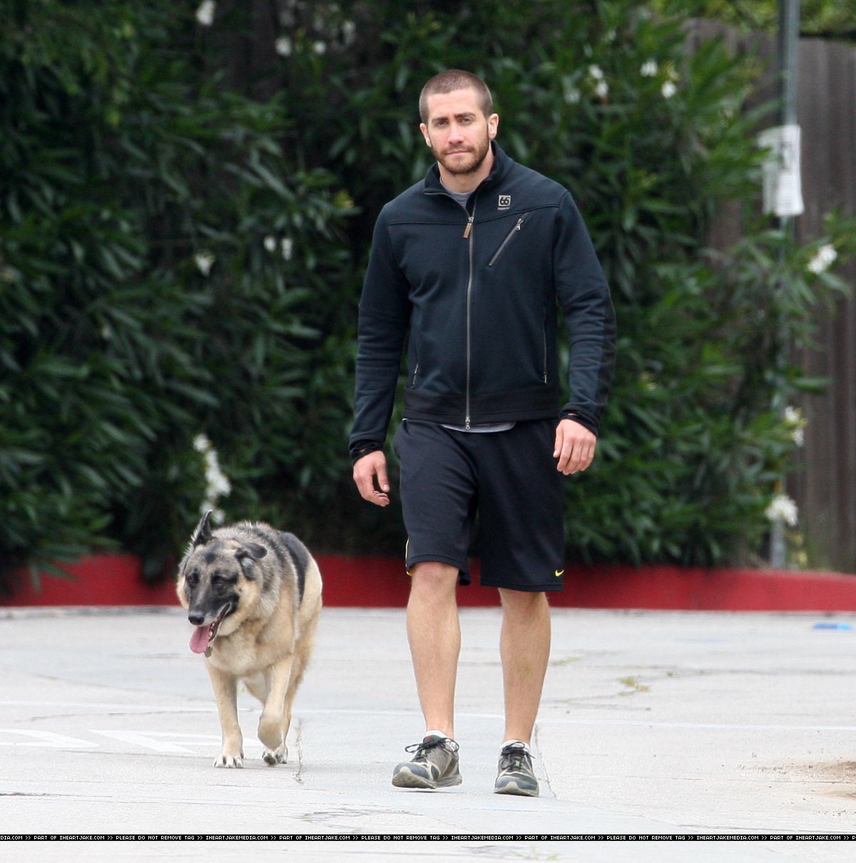 Jake Gyllenhaal aproveitou o sábado para fazer uma caminhada com Atticus e amigos em Runyon Canyon, Califórnia: